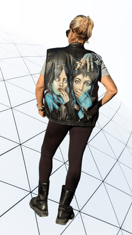 Chaleco Negro de Piel Sintética Pintado a Mano - Beetlejuice 2