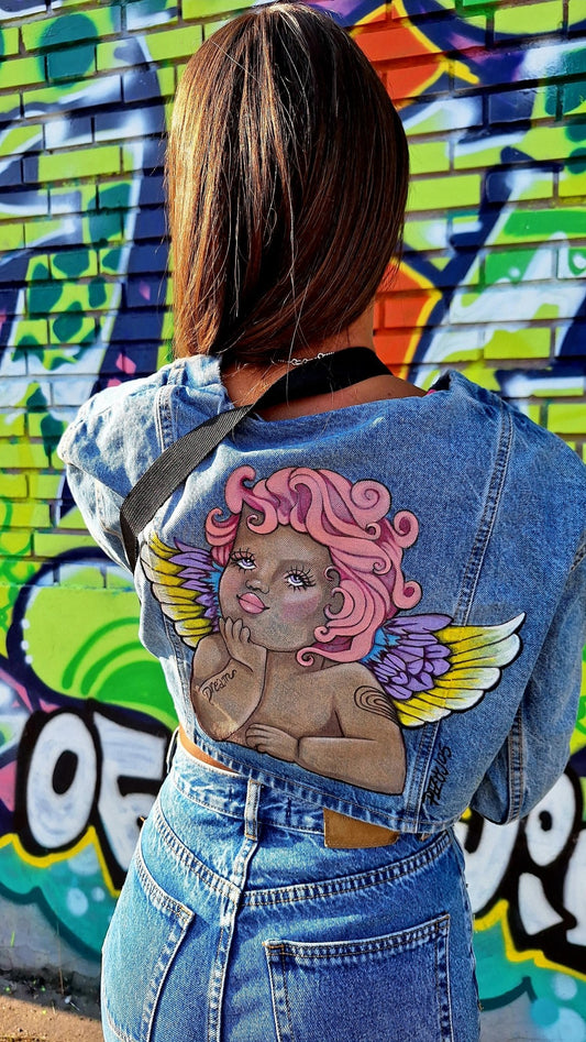 Chaqueta vaquera pintada a mano · Dollavatar rubia única (Talla M)