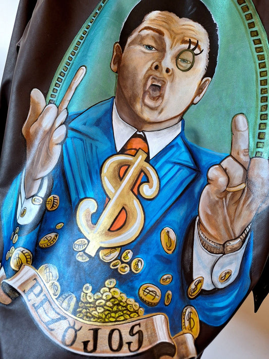 Chaleco largo vaquero pintado a mano – Estilo Pezojos, inspirado en Pulp Fiction
