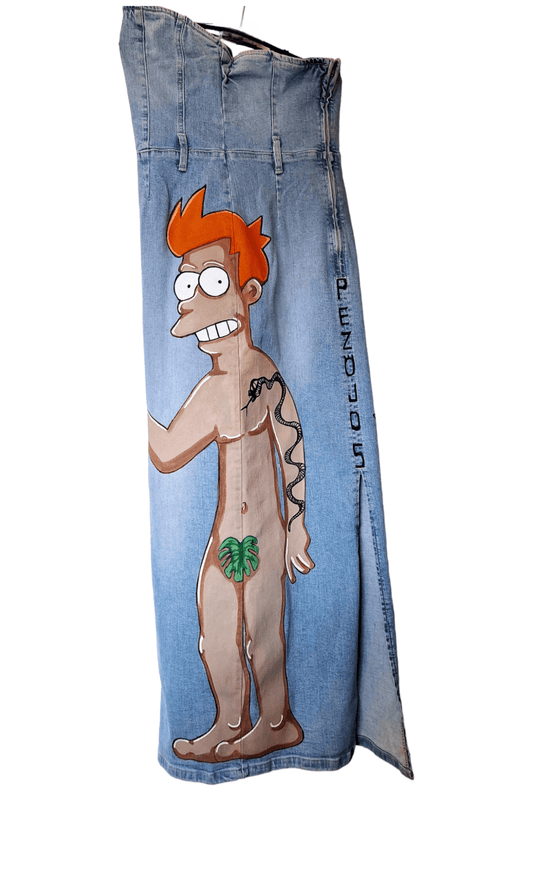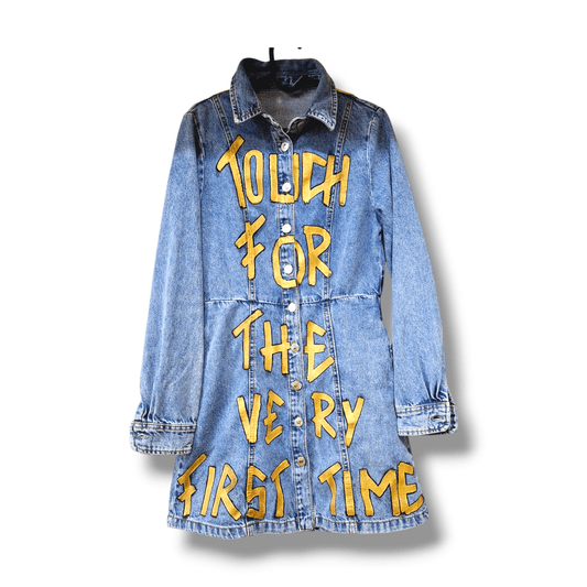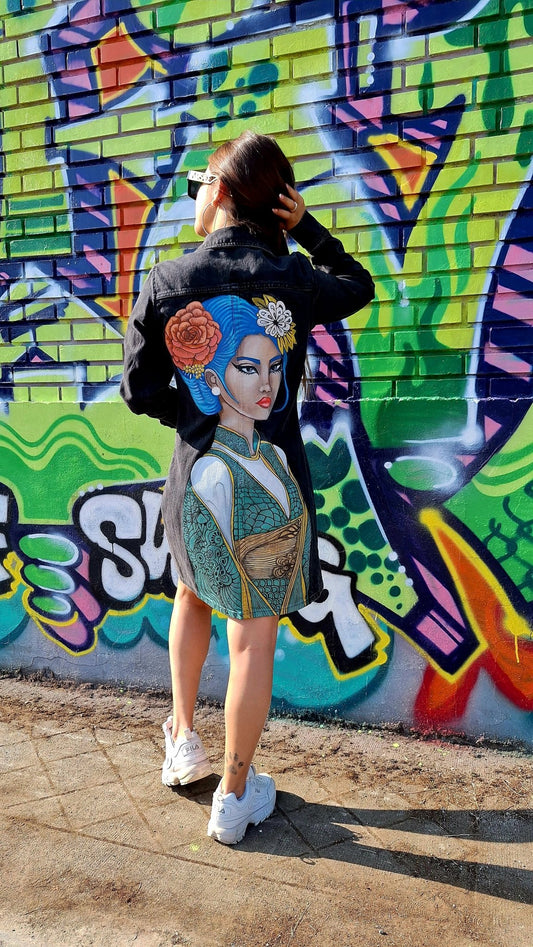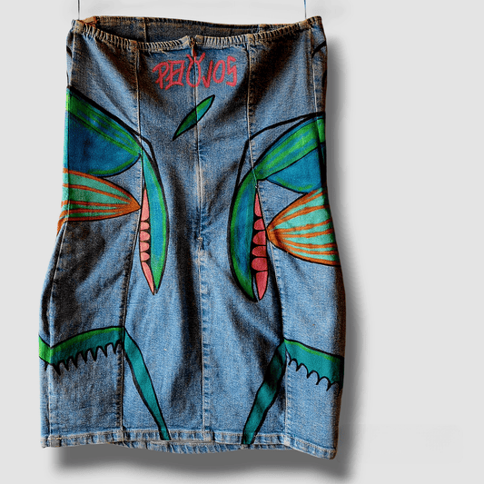 Vestido Levita denim pintado a mano Virgen Guadalupe Pezojos Pop